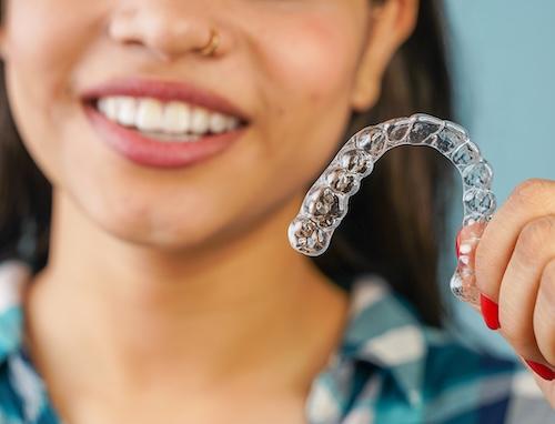 The concept behind clear aligners is fairly basic: Instead of brackets and wires attached to your teeth during treatment, you wear a series of transparent plastic aligners that gradually shift your teeth into proper alignment. Treatment is discreet and easy, requiring only a switch of aligners every one to two weeks, followed by visits every six to eight weeks for check-in appointments.